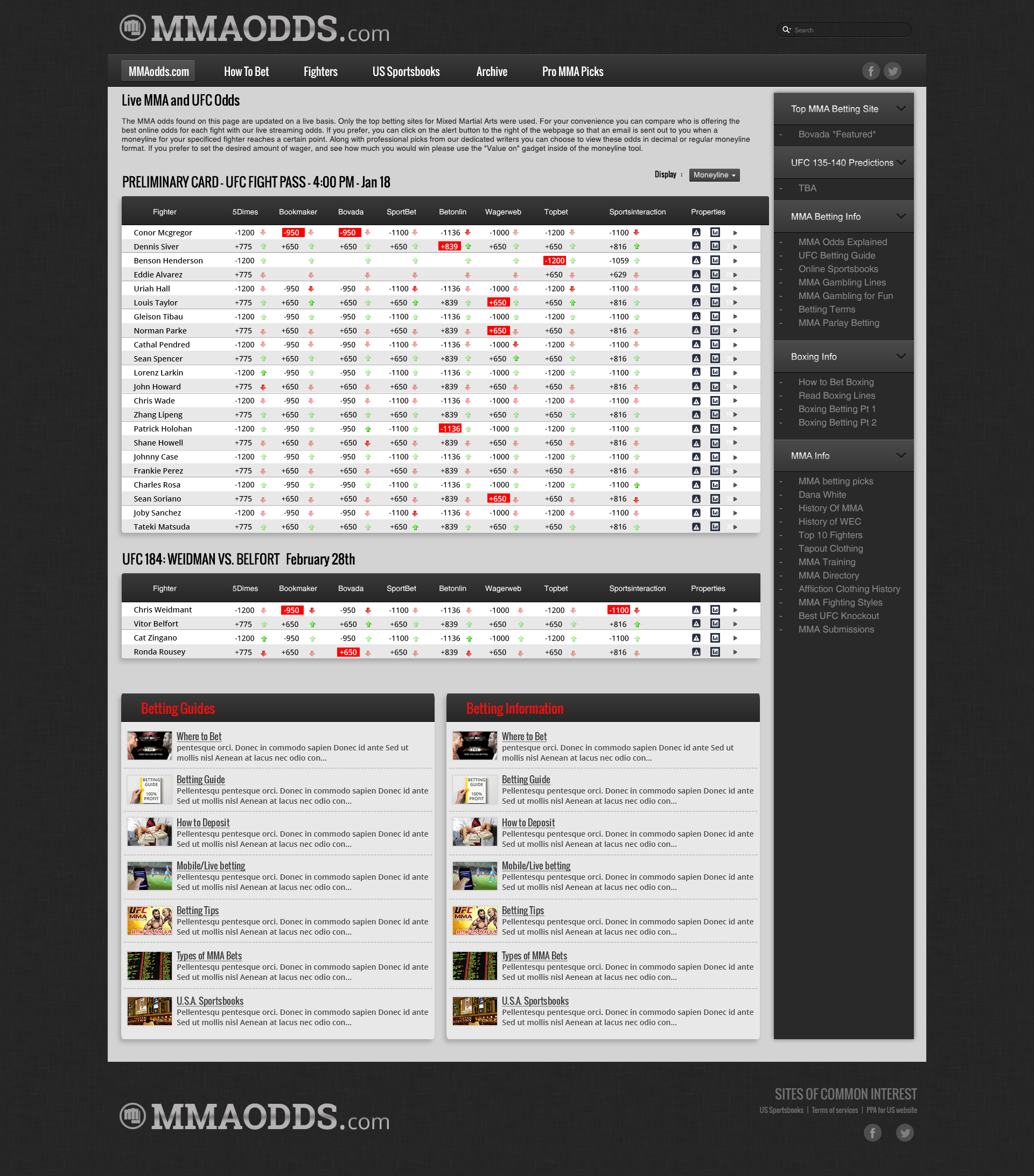 Modern Easy to Use Design for MMAodds.com
